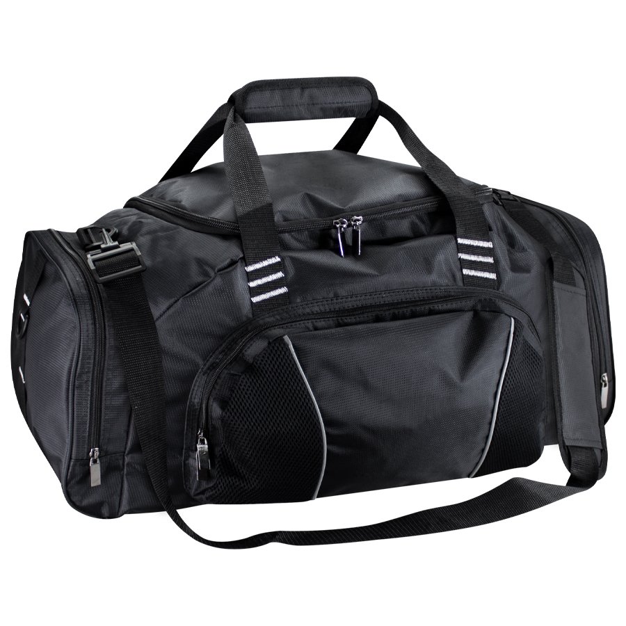 DELUXE Bolso Deportivo y de Viaje grande, modelo "TRAVEL & SPORT". Tela Polyester 840D Jacquard, impermeable. Capacidad 50 litros, tamaño 57 x 32 x 28 cm. Incluye compartimento lateral independiente para Zapatos. Compartimento principal y Bolsillo lateral con vivo y costuras reforzadas. Base protectora de Cartón Forrado. Bolsillo delantero independiente para bordar logo. Un bolso de lujo para sus viajes o paseos.