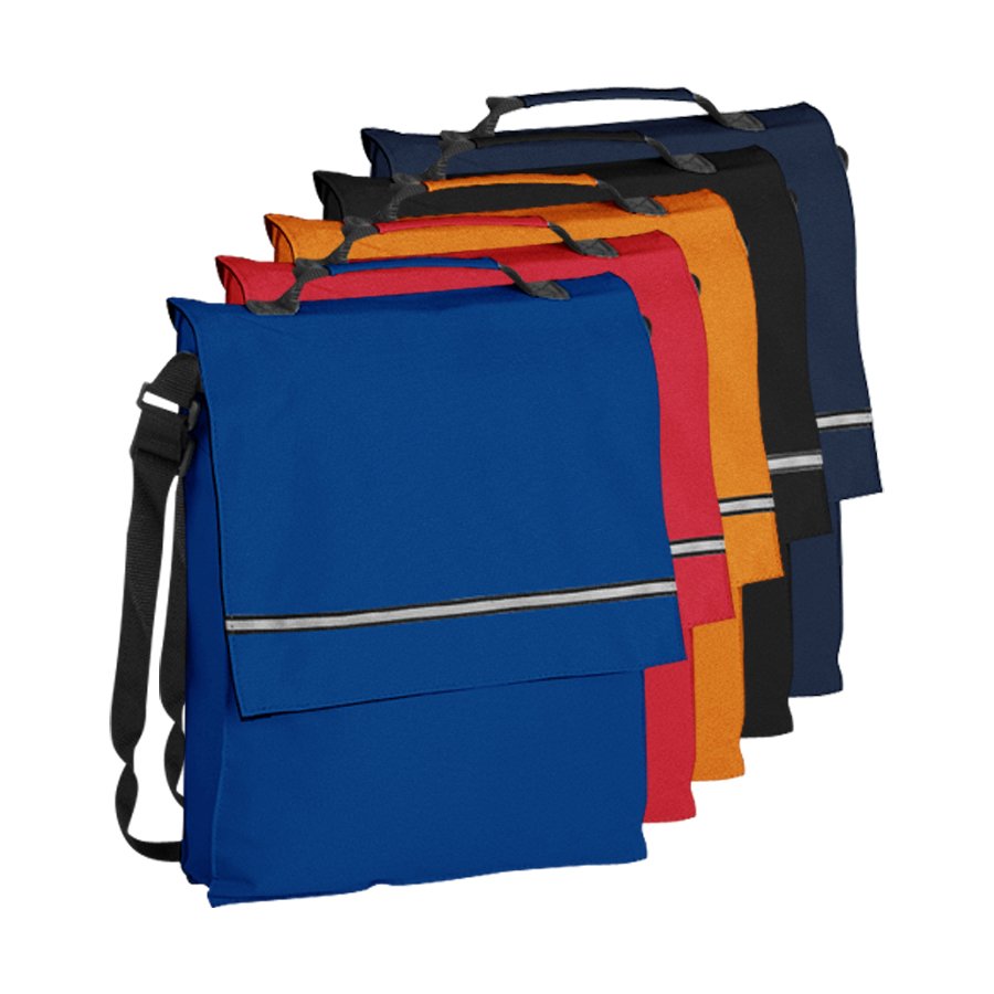 Maletín Portadocumentos de tela raquelada Polyester 600D modelo "Milan", con solapa y bolsillo interior multi-accesorios. Incluye banda reflectante en la solapa.