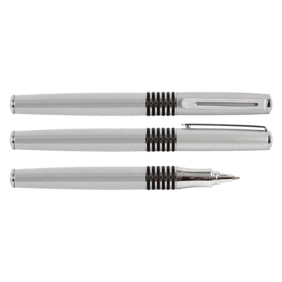 Roller Ball Metálico modelo "Manager", cuerpo de color metalizado y tapa plateada satin. Tinta negra.
