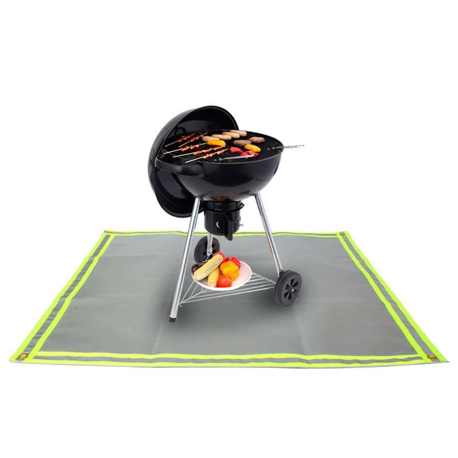 ¿Quieres evitar que las chispas y brasas de tu parrilla o brasero dañen tu piso? Te presentamos esta espectacular alfombra anti-flama de tela de Silicona Fibra de Vidrio, con borde de tela reflectante para ver en la oscuridad. Resiste temperaturas hasta 1.000°C (2.000°F), gracias a su capacidad de reflexión de calor del 96%. Contiene 4 ojetillos en los vértices, para fijar al pasto o tierra. Apilable, liviana, lavable y reutilizable.