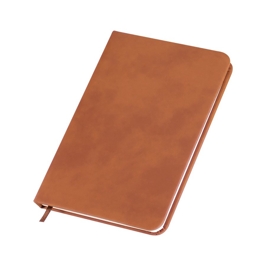 Libreta tamaño A6, con cubierta de cartón piedra forrada en PU simil cuero de 3mm de espesor. Interior 80 hojas lineadas amarillas de 80gsm. Incluye banda separador de hojas al tono. Presentación individual en bolsa de polipropileno.