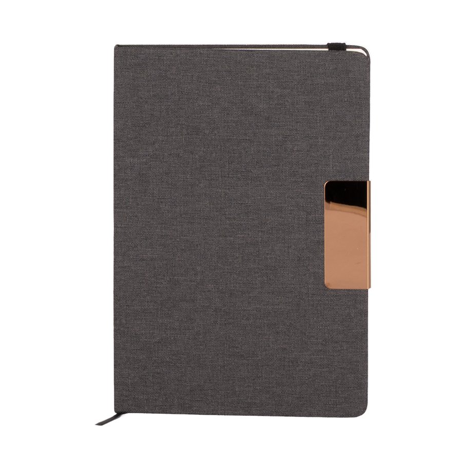 Set de Regalo incluye Termo 550 cc. producto BPA FREE, para el contacto con líquidos y alimentos, con tapa twist-off y asa redonda encobrizada + Cuaderno tapa dura recubierta en tela Oxford negro, con cierre elasticado y detalle metálico encobrizado, interior 80 hojas punteadas (dotted) color ivory (hueso) + Bolígrafo metálico encobrizado con tela Oxford negra, escritura negra . Presentación en elegante caja de carton color negro con tapa, interior cuna de EVA aterciopelada negra. Sobre funda de papel negro.